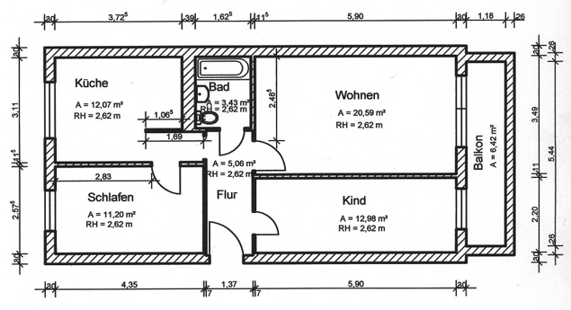 | 2,5 Zimmer | 2. OG links | 59,20 m² |