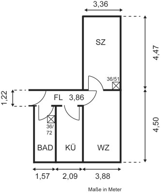 | 2 Zimmer | 1. OG Mitte | 47,62 m² |